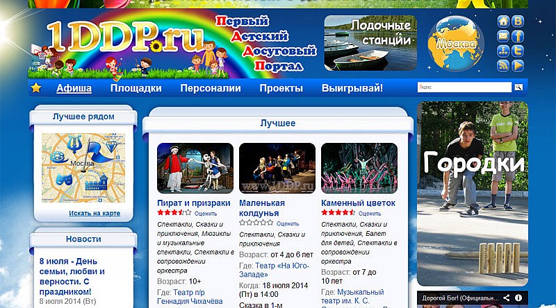 Первый детский досуговый порталPHP framework 2012Теги: разработка и доработка дизайна, календарь мероприятий, интерактивные элементы