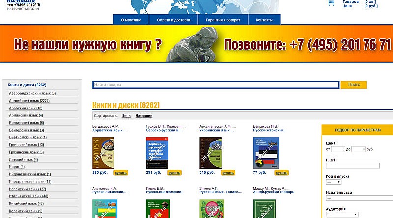 Интернет-магазин учебной литературы для языкового портала