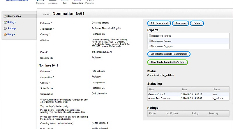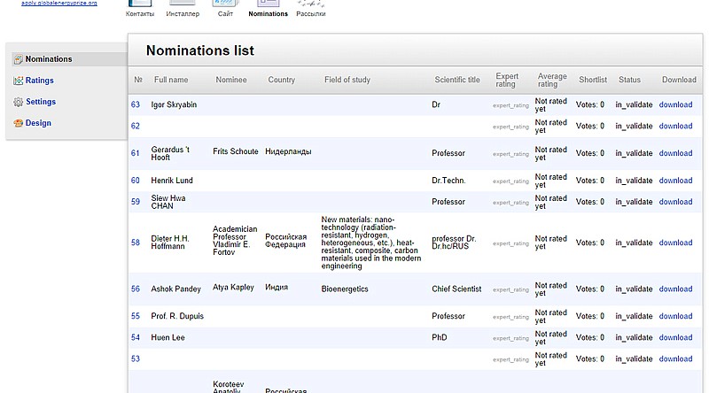 На базе фреймворка Webasyst разработали сайт- систему, организующую процесс подачи и оценки заявок на премию в области энергетики. В рамках проекта создали личные кабинеты для следующих ролей: номинирующийся лица, эксперты, члены рабочей экспертной группы и международного комитета, переводчики.