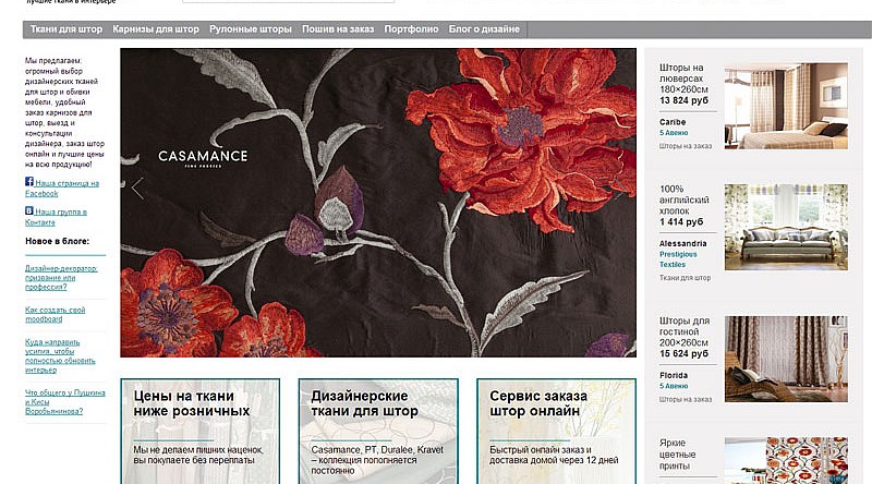 Интернет-магазин интерьерных тканей Доработали форму заказа ткани и форму заказа штор. Изменили вывод статей в блоге. Самописный 2012Теги: оформление заказа