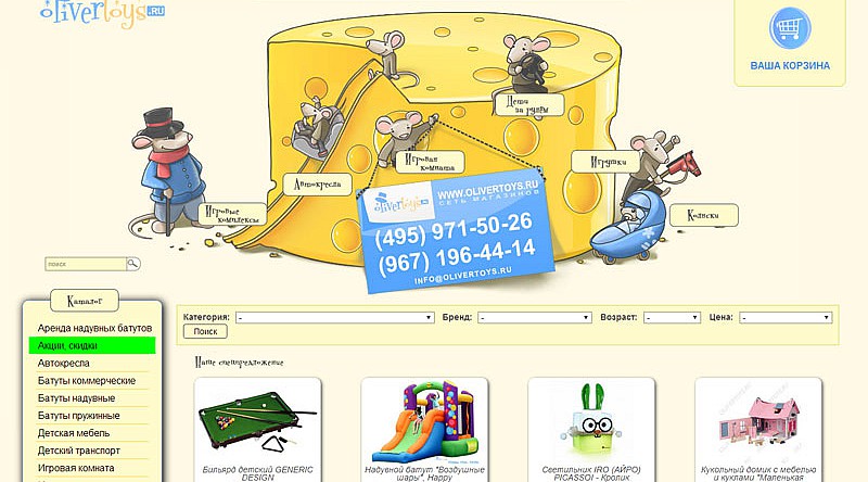 Интернет-магазин игрушек и товаров для детейShop script 2011Теги: составные товары и вариации, подключение сервисов оплаты