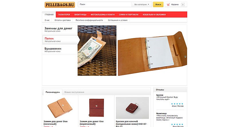 Интернет-магазин товаров ручной работы из натуральной кожиOpencart 2014Теги: подключение сервисов оплаты, наполнение контентом Настроили оплату при помощи WebMoney, карт Visa и Mastercard через платежную систему Interkassa. Разместили баннеры, контактную информацию и ссылки на соцсети.