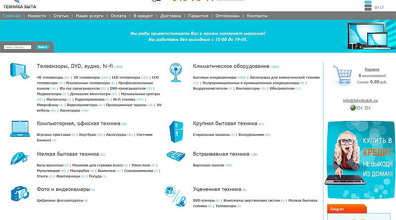 Интернет-магазин бытовой техники и электроники Техника БытаShop script, Самописный 2009Теги: замена CMS, подбор по параметрам, установка готовой верстки