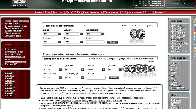 - Переработали подбор по параметрам, реализующий различные наборы ключевых слов: подбор по диаметру, производителю, по маркам авто, по типам